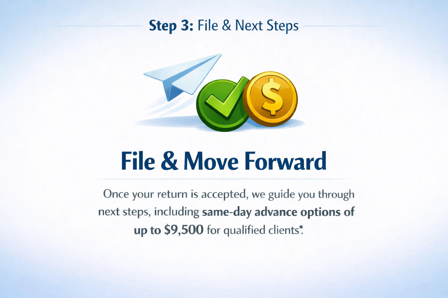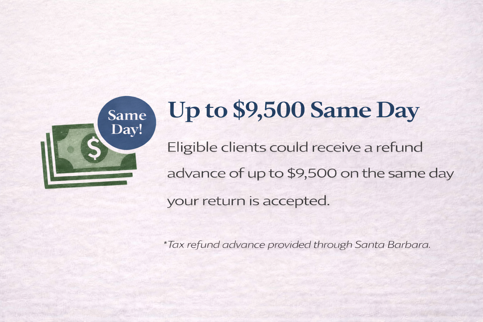 Qualified clients may access a same-day tax advance of up to $9,500 once their return is accepted.*